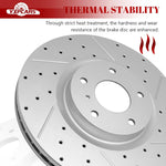 YXPCARS Automotive Replacement Disc Brake Kits--Front Brakes Pad and Drilled Slotted Vented Rotors